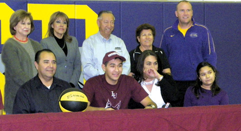 San Benito High School Class of 2011 graduate Joshua Lopez is shown signing a letter of intent to play basketball at Lindenwood University in St. Charles, Missouri. Lopez was a starter on the San Benito Greyhounds during his high school career. (Photo by Carlos Gonzales)