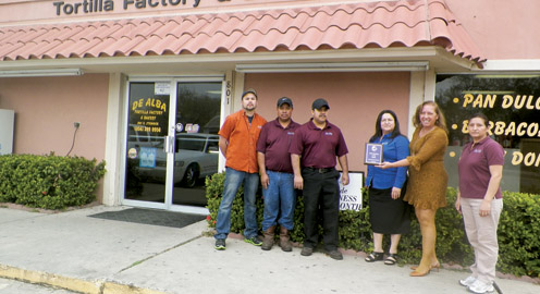 De Alba located on the 800 block of Stenger has been named the San Benito Chamber of Commerce Pride Committee Pride Business of the Month for January. Shown store employees Aidee Chapa, manager, Hugo Treviño, Leocadia Rubio, Juan Hernandez, Paulo Luna and Pride Committee representative Debbie Layton. (Staff photo by Michael Rodriguez)
