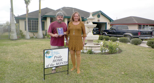 The Garza residence, located on the 200 block of Palmero, has been named San Benito Chamber of Commerce Pride Committee Pride Home of the Month for January. Shown (from l-r) is homeowner Santos Garza and Pride Committee representative Debbie Layton. (Staff photo by Michael Rodriguez)