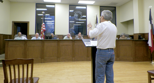 Local resident Jose F. Rodriguez speaks to the City of San Benito Charter Review Committee during a public hearing held Wednesday evening at the Municipal Building. (Photo by Jerry Rodriguez)