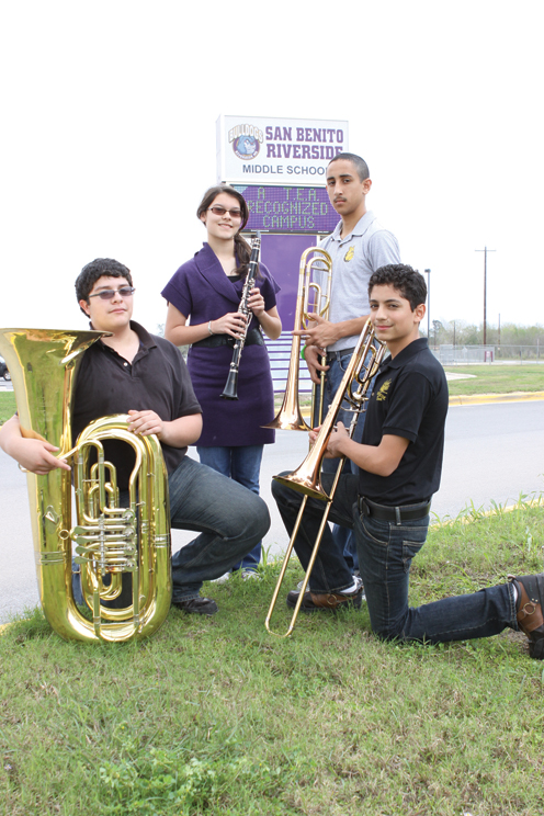 Pictured (from left) are the All-Valley band members from Riverside Middle School; Marco Gutierrez (tuba), Pablo Castro (trombone), Aaron Adame (trombone) and Raeann Rojas (clarinet). (Photo by T.J. Tijerina)