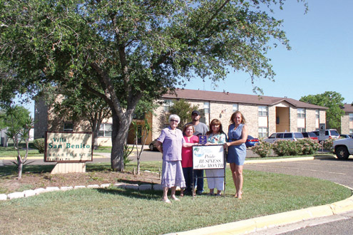 Villa San Benito, located on the 800 block of S. McCullough has been named the San Benito Chamber of Commerce Pride Committee Pride Business of the Month for April. Shown (from l-r) is Bertha Wilson, volunteer Sonia Vega, Jesse Tamayo and manager Sonia Vega, and Pride Committee representative Debbie Layton. (Photo by Scarlet O’Rourke)