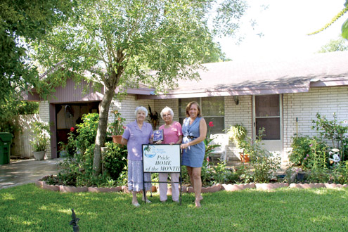 The Tapia home, located on Gene Moody Street, has been named the San Benito Chamber of Commerce Pride Committee Pride Home of the Month for April. Shown (from l-r) is Bertha Wilson, homeowner Maria Luisa Tapia, and Pride Committee representative Debbie Layton. (Photo by Scarlet O’Rourke)