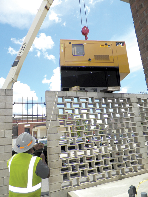 City of San Benito employees used a crane Monday to transfer a new generator to the annex building, where it will be utilized in the event of power outages. (Staff photo by Michael Rodriguez)