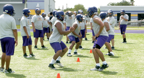 Greyhound practice1As if it had never left, football season was back in full force in Greyhound country Monday as receivers ran routes and linemen practiced stances all in preparation of competing in what some are calling the toughest district in the Rio Grande Valley: 31-5A.
