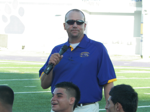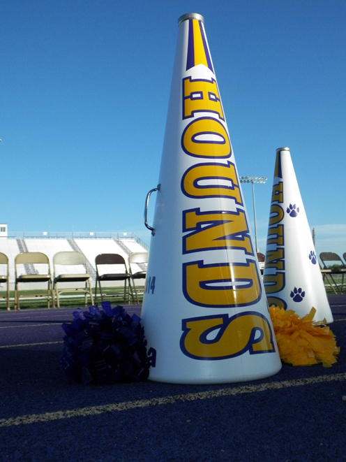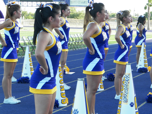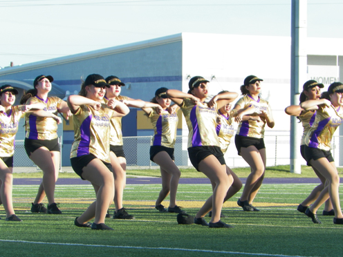 Pictured are scenes from Friday night’s Meet the Greyhounds, in which the varsity, JV and freshmen football squads were introduced to the purple and gold faithful while the high school band, belles and cheerleaders provided entertainment. (Staff photos by Heather C. Cox)