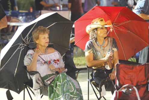 Hundreds of attendees of Friday evening’s kick-off festivities for the 21st Annual Conjunto Fest are seen here at the Plaza de San Benito off Stenger St. Performers helped get those who braved initial showers into the Conjunto spirit with accordion-driven huapangos. (Photos by Rodrigo Davila)