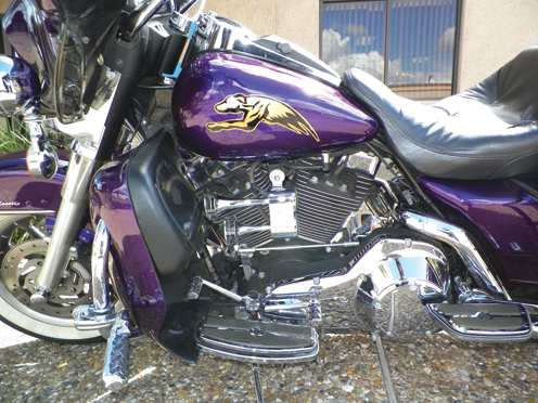 Thus far, Peter has invested at least $6,000 in customizations on a bike he paid $28,000 for, but the end result has been worth it. He’s recently added a new paint job and even newer decals that grace the bike with the latest version of the Greyhound logo.