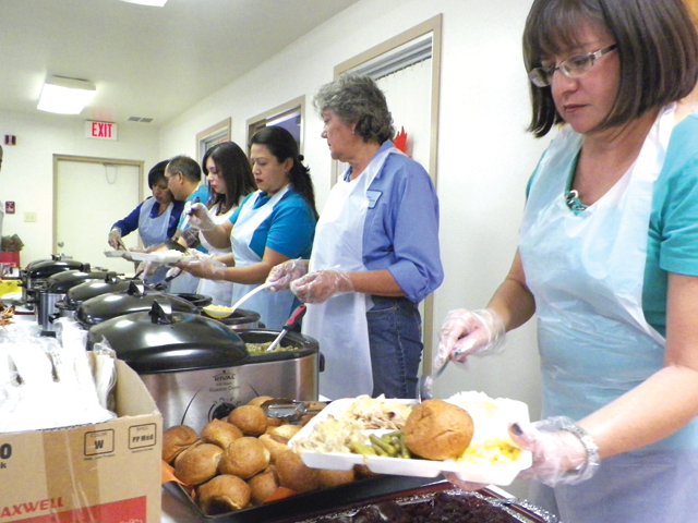 San Benito Housing Authority staff prepare meals for tenants and fellow employees alike during their annual Thanksgiving luncheon last week. (Staff photos by Heather Cathleen Cox)