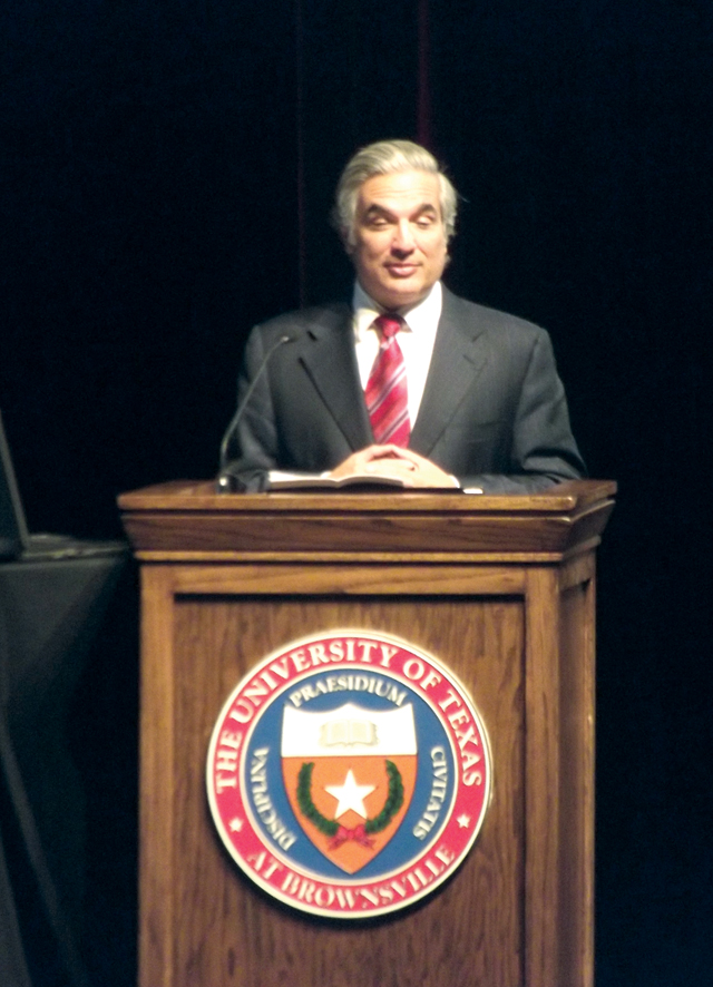 BROWNSVILLE – Friday, the University of Texas System Chancellor Francisco G. Cigarroa and the UT System Board of Regents Chairman Gene Powell, along with UT Brownsville President Juliet V. García, held a town hall meeting to discuss the planned merger of UT-Pan American in Edinburg, UTB, and the Regional Academic Health Center (RAHC) in Harlingen with a single school of medicine.