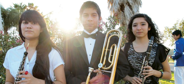 Representing Berta Cabaza Middle School as top musicians were Gabriella Beltran (oboe, wind symphony), Damien Rodriguez (trombone, symphonic winds) and Victoria Vasquez (clarinet, symphonic winds). Beltran represented the school in the traditional parade of colors that preempted the evening’s musical performances.