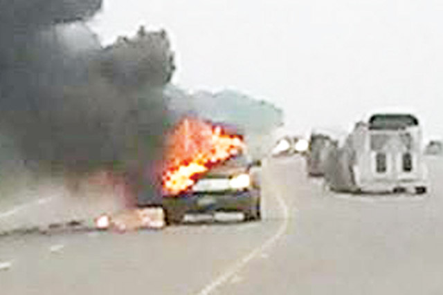 Pictured is the scene of a car fire that occurred on State Highway 100 in Los Fresnos on Sunday.