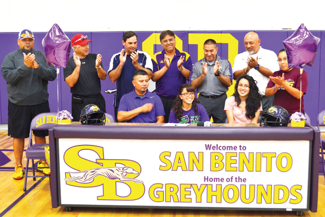On Wednesday, May 28, cheers filled the San Benito High School varsity gymnasium as Jasso, in front of her former teammates and coaches, signed a letter of intent to play softball with Huston-Tillotson University in Austin.