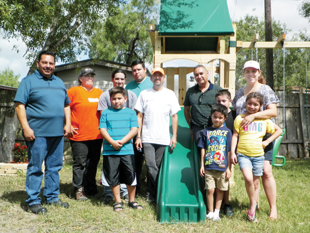 The family of Sylvia Munoz Rosas are seen at their San Benito home on Wednesday with representatives of Home Depot in as well as local community members after the Harlingen business donated a playground to the family.