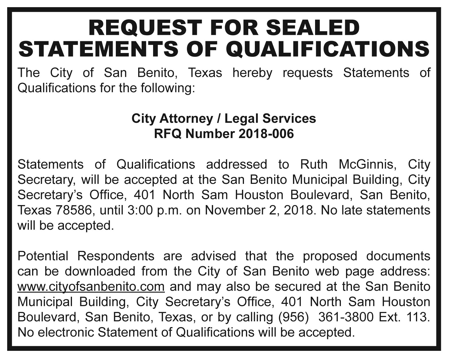 Permanent link to this article: https://www.sbnewspaper.com/2018/10/05/city-of-san-benito-requests-for-sealed-statements-of-qualifications/