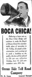 For many years, Boca Chica Beach afforded Valley folks the nearest and most accessible beach before the building of the Queen Isabella Causeway at Port Isabel. The causeway was completed in February of 1954.