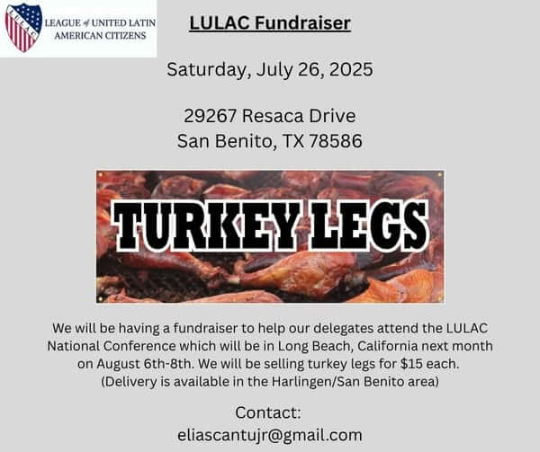 To fund the trip, the council has launched a turkey leg fundraiser. Each $15 leg will be cooked by Baldemar Ramirez, who volunteered to help after being contacted by LULAC District Director Federico Garza.