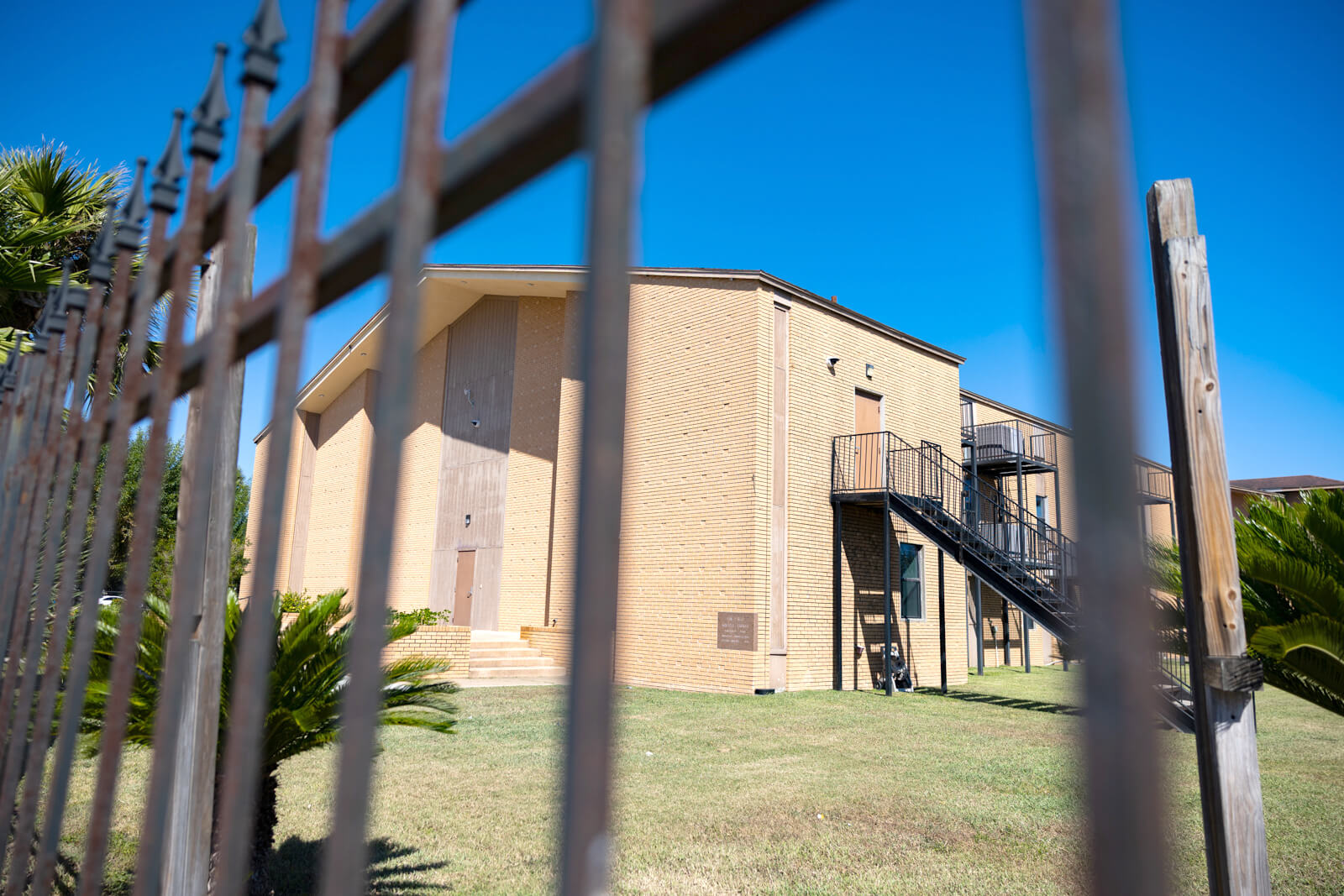 The main building, an old tan-brick former Baptist Church, occupies a city block in downtown San Benito, a quiet town of about 25,000. The church was converted into a migrant shelter in 2015 and was managed by two other contractors before Urban Strategies took it over in 2021.