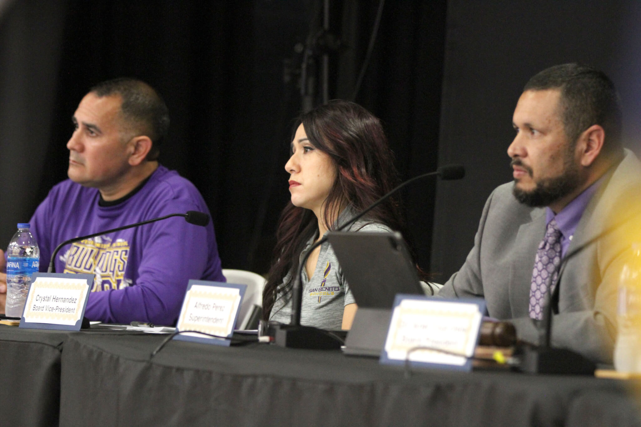 Board Trustee Frutoso Gomez, who was raised on the outskirts of San Benito and attended La Paloma Elementary, delivered an impassioned speech at the Town Hall urging that the campus stay open.